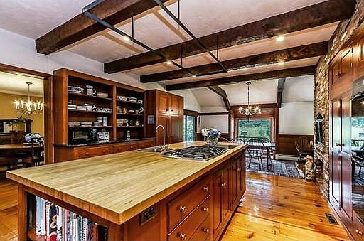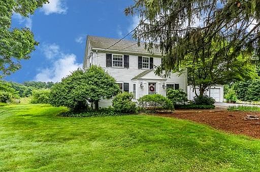 Beautiful 4/5 bedroom Colonial convenient to Rte 109 and I-95. Featuring a gorgeous backyard w/stunning, scenic views, this home has an updated kitchen w/brickwork & wood beamed ceiling, custom cabinets, granite counters, double ovens, gas range, butcher block island, dining area & greenhouse window. Adjoining family room w/vaulted ceiling has skylights, built-ins, & wood-burning stove. Dining room w/dentil molding opens to a sun-filled 3 season porch overlooking the large backyard w/brick patio, stone wall & storage shed. Formal living room w/fireplace, office, bedroom & full bath complete the 1st floor. 2nd floor includes 2 large bedrooms w/shared full bath, & master suite w/private bath, shower & jacuzzi tub, skylights, & large dressing room. Partially finished basement provides bonus room & large cedar closet. Includes C/A & sprinkler system! Located 1/2 mile from theschools, library, restaurants of Westwood town center, & walk to Hale Reservation, take the virtual tour now!