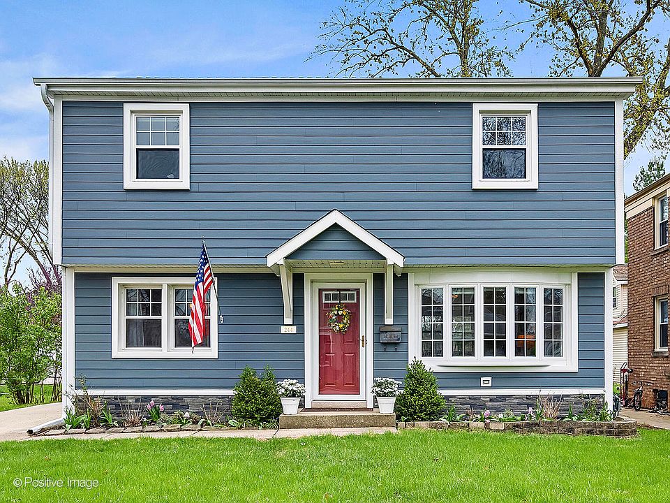 Located just blocks from Elmhurst City Centre, this charming home features 5 bedrooms and 2 1/2 bathrooms on a large 50 x 168 lot. Featuring new James Hardie siding, updated outdoor fixtures, and a spacious wooden deck, the exterior of the home has been completely transformed. A rare 2 1/2 car wide garage with upper-level storage is an added benefit. Inside, the home boasts loads of natural light with a beautiful bay window in the spacious living room and two newer tilt-in windows in the dedicated dining room. The kitchen is updated with quartz countertops, Shaker-style cabinets, modern stainless steel appliances and a pantry. Upstairs are four bedrooms and one full bathroom with a tub. The original hardwood floors are in great condition and the elegant 5-panel doors with cut-glass doorknobs add character throughout. The fully finished basement provides versatile space with two additional rooms suitable for a bedroom, office, exercise room, or recreation space, alongside a second full bathroom with a walk-in shower. The laundry room offers ample storage with cabinets and wire shelves, and has a long countertop for folding clothes. With easy access to the new Field Elementary School, East End park and pool, shops, restaurants, the train station, and expressway, this home perfectly marries classic charm with modern convenience.