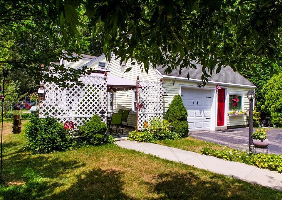 Value! Spacious well kept cape, 3 bed, 1 1/2 bath, large living room with fireplace, den, dining room and two bonus rooms over garage. Fenced yard that backs up to woods, garage & plenty of off street parking. Subject to seller finding suitable housing.