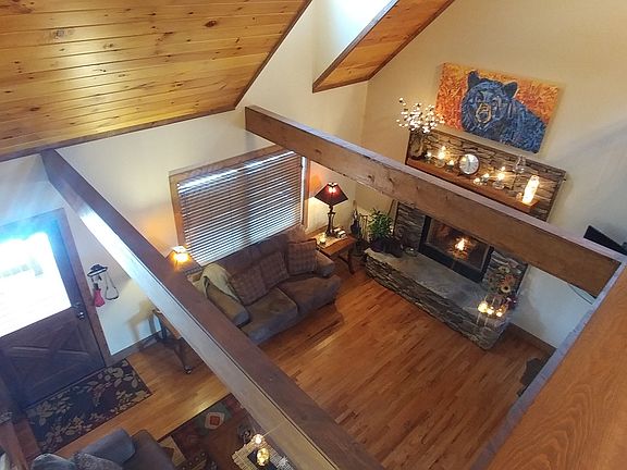 Beautiful Maple Kitchen Cabinets, Granite Countertops, Hardwood Floors, Wood Ceilings, Volume Ceilings, Rinnai Tankless Hot Water Heater(You will Never Run Out of Hot Water), Double Pane Windows, Low Energy Bills, Wood Burning Fireplace, Open Floor Plan, Gas Stove, Nine Foot Ceilings in Basement, Two Large Windows in Basement, Full Size Front and Back Porches, Back Porch Gas Grill(Hooked Up to House Gas Line....Never have to Fill a Small Gas Tank), Private Cul-de-sac and an Incredible National Park Like Neighborhood. Come See For Yourself!!! Perfect mountain getaway with beautiful views of mountains and Trout Lake in Powder Horn Mountain. 2 bedrooms 1 bath on main level, loft and full bedroom and separate bath on 2nd level. Large unfinished basement space. Furnishings are negotiable. Central Heat and Air. Awesome front porch with rocking chairs to enjoy the mountain air. Located in Powder Horn Mountain a gated community with full time maintenance, pool, tennis court, clubhouse, fitness center, hiking trails, campground, paddle boats, fishing, and more!