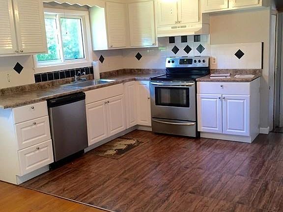 Make this Beautiful ranch with 3-4 bedrooms situated on 1/2 an acre your New Home! The Newly sealed circular driveway entrance offers convenience as well as additional parking. Enjoy a 2 car garage w/workshop! The ceiling is high enough for a lift! New siding, Brand New roof, Newly built exterior deck and Fresh exterior paint add to the homes exterior appeal. Once inside you will find a beautiful and spacious front rm w/cathedral ceilings perfect for family gatherings, an over sized eat-in-kitchen offering newer cabinets w/additional food prep area, a sun filled family rm w/large bay window and wood burning fireplace, NEWLY REFINISHED wdfloors in Livingrm and all 3 bedrooms and Updated 1st floor bathroom! HOUSE has newly painted interior! In addition, the huge basement offers an abundance of storage and additional living space that may be used as 4th bedroom or office/den. A Large, Level and fenced in backyard adds even more value! Great Location, Great Price, MOVE-IN-READY!