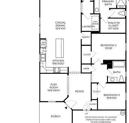 Flex roomCasual dining areaPlenty of storageFull hallway bathSpa-like bathSizable walk-in closetPrivate water closet