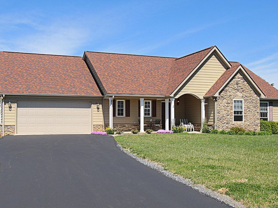 No expense was spared in the 2012 construction of this Ranch Home with Amazing Views! Open concept kitchen, generous great room with high ceilings and opulent Sun Room. Generous master suite and full finished basement. 2.6 cleared acres provides ample space for a garden or bring the chickens. Trex decking makes this an ideal family home. True One-Level Living with bonus finished basement.