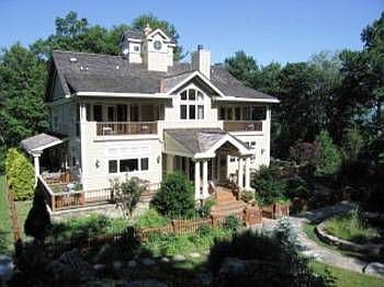 Extraordinary home! Escape to this enchanting landscape w/ your own waterfall and fishponds on 4.58 wooded, private acres with beautiful views. Seller will sell the 4.4 acre lot in front of the house if buyer wants the entire piece. Exquisite details incl. custom marble in-laid flooring, custom chef's kitchen, big-screen surround sound media room, luxurious cherry paneled den, Italian inspired master bath w/ steam shower, exercise and massage rooms, upstairs/downstairs laundry, extensive built-ins, beautiful usable decks on 3 sides, stained glass, and lots of windows to bring the outside in.