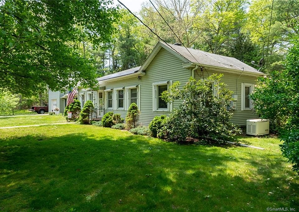 Looking for an intown location with the possibility of a business use? You've found it here! Sprawling ranch on a lush,level &lightly wooded 2-acre lot with separate outbuilding ideal for contractors, landscapers, antique dealers or collectors! Includes lot across the street just under an acre (non-buildable). Originally built in 1937 as a service station this property has been transformed into a single family in the VD business zone. Many options available for home office/business use. Bright and sunny interior featuring a recently remodeled kitchen with breakfast bar plus separate dining area. open floor plan great for entertaining. Comfortable family room with wood stove and adjacent office area with separate entrance. Living room can also serve as a formal dining room. The primary bedroom is tucked away on one side of the home with a full bathroom and walkin closet. The second bedroom has views of the backyard & features a half bathroom. Great for multi-generational living. Collector car enthusiast? There is a 2 car attached garage plus separate 2-car detached garage/barn. Great for storage as well as lawn equipment. Plenty of private yard for large scale outdoor parties. Also ideal for pets or playing sports. Only minutes to downtown Voluntown, Doaneville, Beachdale& Pachaug Ponds. Convenient access to I-395 with an easy commute to ELECTRIC BOAT, FOXWOODS OR MOHEGAN SUN CASINOS, US COAST GUARD ACADEMY or US NAVY SUBBASE. Enjoy this rural yet charming northeast CT town!