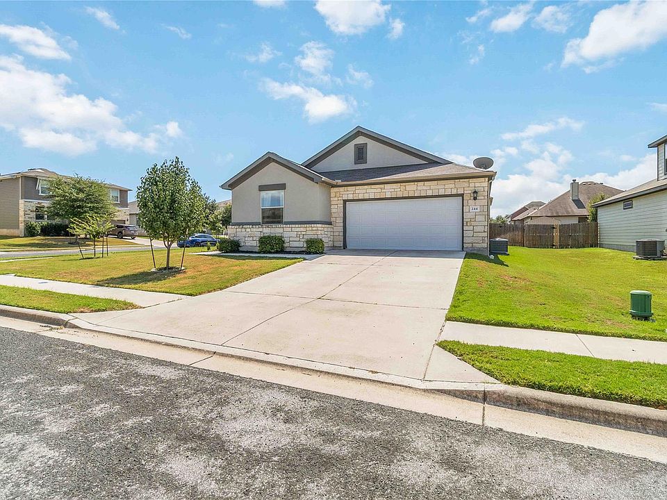 MOTIVATED SELLER. Your new home features a large family floorplan with the kitchen, living room, and dining areas flowing together seamlessly, ideal for entertaining. Your kitchen includes lots of counter workspace and a large center island with a breakfast bar, plus walk-in pantry. Your primary features an generous ensuite and walk-in closet. Plus, three generously sized secondary bedrooms. Your covered patio offers a shaded outdoor entertainment area and large yard to be enjoyed by all. DON'T MISS THIS ONE!! The HVAC and garage doors were replaced in 2022, and the home includes an irrigation system. Stonewall Ranch offers community amenities such as a pool, splash pad, playground, basketball court, and more. Plus, a new Costco and Target are currently under development just 5 miles away—adding even more convenience to this growing area. ** A discounted interest rate and FREE future refinancing from OrchardMortgage.com