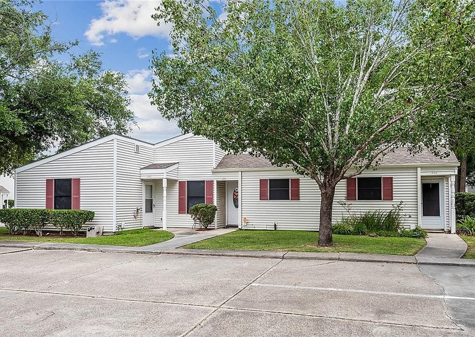 Home ownership made easy! Condo association maintains pool, roof, outside walls, exterior insurance, trees, grass, parking area, paid water & sewer, garbage and much MORE! Updated HVAC system (2021), cabinets, carpeting, and freshly painted. 2 bedrooms up with a full bath. Primary bedroom has extra sink and private balcony. Kitchen opens to dining area, convenient half bath, and living room with woodburning fireplace. Exterior storage room and courtyard fenced in. Roof replaced in 2022.