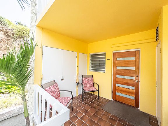 - Exterior features: 24 Hour Security, Accordion, Cliff, In Unit, Patio, Pets - No, Pool, View Type: Buck Island, View Type: Ocean, View Type: Sea, Waterfront