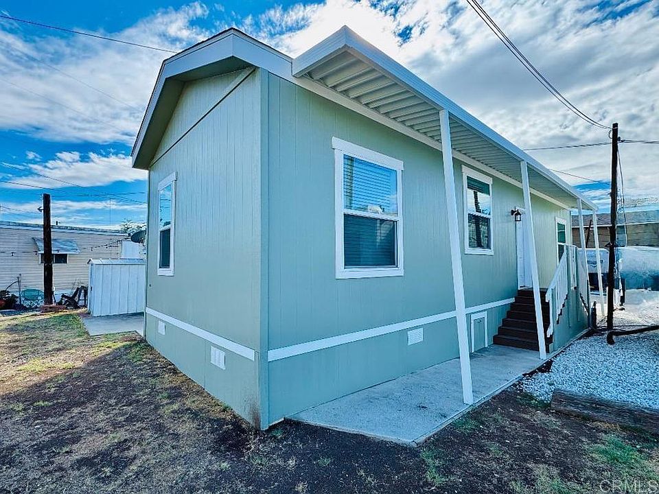 Beautiful and Cozy, Brand NEW Manufactured Home in ALL-AGE, Shady Lane Community. 2025, Champion Manufactured Home, 2 Bedroom and 1 bath home. Home features include: High Ceilings, kitchen with stove and refrigerator included, easy to clean and maintain vinyl flooring throughout home, central heating and AC, fans, washer and dryer hook-ups, Space rent is one of the lowest in the county $900 with no age restrictions. The community is well maintained and centrally located near grocery stores, malls, restaurants, banks, post office, transportation, and freeways. Great opportunity and economical way to live in America's Finest City, Gorgeous San Diego! Come see this home before it’s gone! Schedule a personalized showing today!
