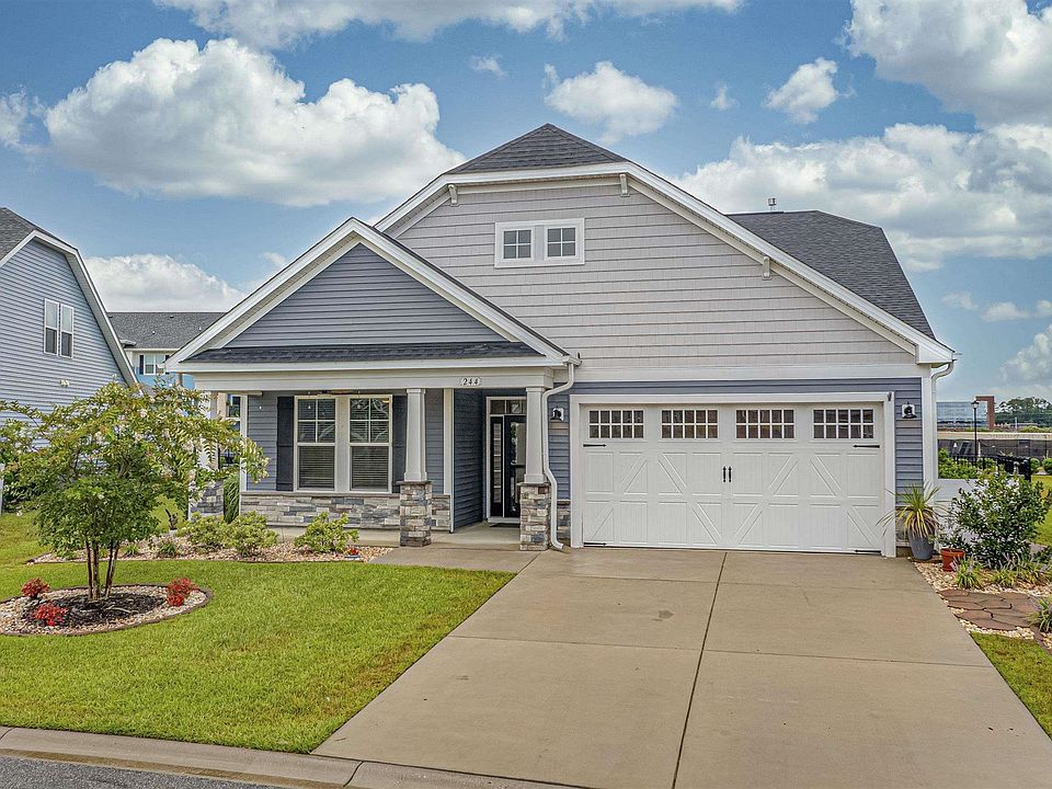 Come live "The Good Life" in Bridgewater community located in Little River, a less than 10 minute drive to the beautiful Cherry Grove beach. No need to wait 12+ months for a home to be built, this stunning home feels brand new! After coming in through the wide entry way, this single-level home features a spacious open floor plan, high ceilings, crown molding, and LVP flooring throughout the main space. The gourmet kitchen boasts an oversized island, stainless steel appliances, beautiful granite countertops with backsplash, large pantry, and breakfast nook. The roomy family, living space is centered around the gas fireplace and has two-panned, tall sliding glass doors with plantation shutters connecting screened in porch. The master suite features tray ceilings in the bedroom, the deluxe bathroom option - double vanity, full tile shower, garden tub, water closet, and walk in closet. Enjoy the beautiful SC weather in the screened inporch and grill out on the enlarged patio. This home is located on a larger lot almost 1/3 an acre and owners added gorgeous landscaping, pavers,and a black iron, fully fencedin yard. Additionally the home offers an irrigation system, tankless water heater, two car garage, drop zone, large laundry room, and more. The community itself has a luxury 5000 square foot clubhouse, fitness center, resort style pool complete with shaded cabanas, kayak launch, outdoor kitchen, dog park, and playground. This location is perfect with easy access to 31 and Hwy 17 to get to anywhere on the Grand Strand. You'll want to schedule your showing today to make this home yours!
