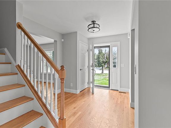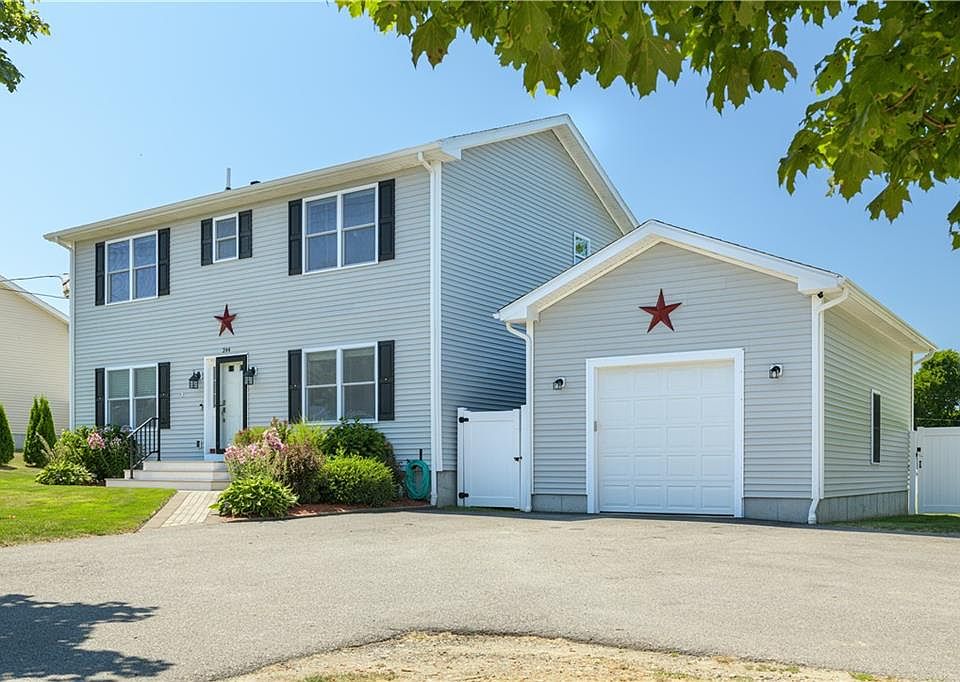 Imagine summer afternoons lounging by the pool, evenings on the deck with friends and morning walks to the to the park..all are possible from this Portsmouth oasis! Built in 2016, this freshly painted Colonial offers hardwood floors throughout much of the home and a flexible floor plan for today’s lifestyle. A spacious home office sits just off the entry, while the open living room and kitchen create the perfect space for gathering. The kitchen features white cabinets, solid-surface counters, stainless appliances, and a coffee bar. A convenient powder room with laundry rounds out the main level. Upstairs, the primary suite offers a generous layout with a walk-in closet leading to an oversized bath with double vanities, soaking tub + a large shower. Two additional bedrooms share a full bath between them. With Central AC + Gas heat, this newer construction home has the amenities you need! The oversized one-car garage has been used as an impressive workshop, but could accommodate a vehicle + storage. The partially finished basement, accessible from both the interior & garage, makes moving furniture & larger items a breeze. Sliding doors off the living room lead to your oversized backyard, fully enclosed with a vinyl fence for privacy, complete with a pool, deck & storage shed. Sidewalks lead directly to Portsmouth Community Playground, Portsmouth High School & Clement's Marketplace. The home’s northern Portsmouth location provides quick access to Route 24, Newport & Bristol!