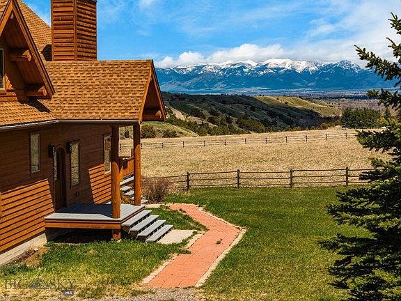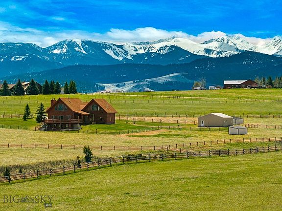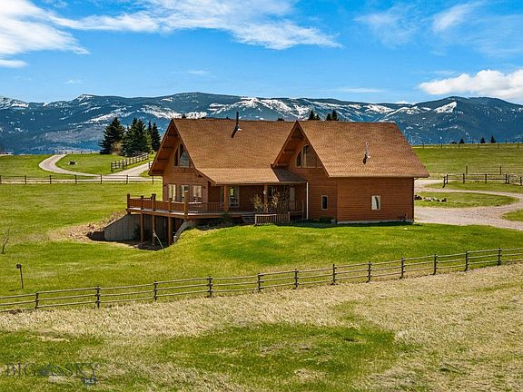 Perched on 20 scenic acres with panoramic mountain views, this rare-to-market estate offers the perfect balance of natural beauty, privacy, and functionality. Ideal for animal lovers or wide open space enthusiasts, the property is fully fenced and cross-fenced into three lush pastures with wood rail fencing, two loafing sheds, and ample room for riding or grazing. Inside, the home exudes warmth with rustic log accents, real wood flooring, and a stunning wood-burning fireplace in the open-concept living, dining, and kitchen area. The kitchen is a chef’s dream with a gas range, double ovens, travertine tile, and butcher block countertops. The upper level is dedicated to a private master retreat with a gas fireplace, vaulted ceilings, and breathtaking views. The finished walkout basement offers a second kitchen, built-in sauna, full bathroom, and generous guest space—perfect for entertaining or multi-generational living. Outside, a heated, oversized shop with concrete floors and an unfinished bathroom provides excellent space for equipment, storage, or future expansion. The circular driveway adds convenience and a welcoming approach. Situated with close proximity to bustling Downtown Bozeman, Big Sky, and the Bozeman Yellowstone International Airport. With commanding 360° degree views and a picturesque setting with space to roam, this property captures the essence of the Montana lifestyle—serene, practical, and surrounded by beauty.