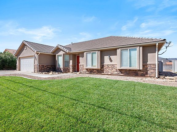 Fantastic home in La Verkin with a transferable nightly rental license and furniture included. This property is easy to clean with tile floors, coriander countertops and fully fenced yard with automatic sprinklers. It boasts a large Walk in laundry room with sink! Jetted tub in master bath + space for RV Parking on the property! French doors to a Large backyard with covered patio and a beautiful view.