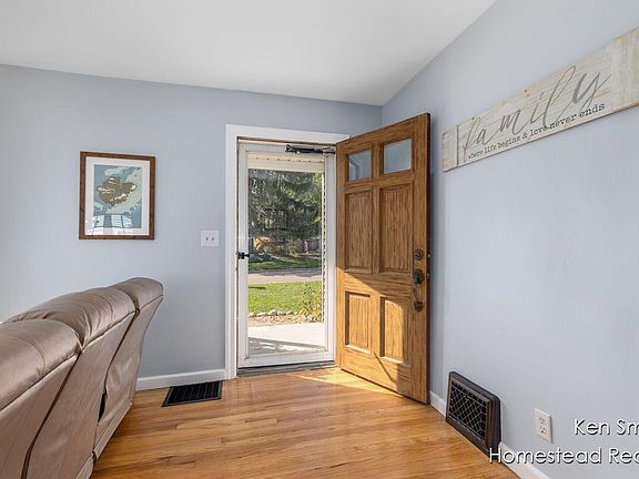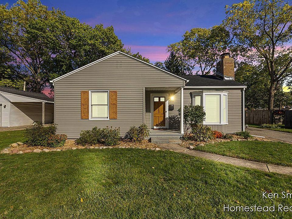 This charming home welcomes you with stunning hardwood floors throughout the main level. The spacious living room features a cozy fireplace and a bright bay window, flowing seamlessly into the dining room with French doors that open to a fenced backyard - perfect for entertaining on the patio and fenced back yard. The primary bedroom offers a generous walk-in closet, and you'll love the newly remodeled bathroom with modern finishes. Both the main floor and finished basement have been beautifully updated, making this home truly move-in ready! A large 2+ stall garage provides plenty of storage and parking space. Conveniently located just around the corner from Two Guys Brewery and 10 minutes from downtown Grand Rapids, this home combines comfort, style, and location - don't miss it. Immediate possession! Call or text today to schedule your private showing.