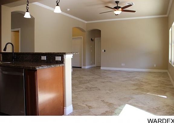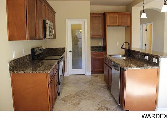 Beautiful new custom home in the only master planned community in central Kingman. Custom finishes include elegant maple cabinetry, beautiful granite counters, upgraded tile, custom walk-in tile shower in master bathroom, designer fans, Moen plumbing fixtures, stainless steel Whirlpool appliances. Energy saving features upgraded insulation, Low-E windows, low flow plumbing fixtures. Low maintenance features tile roof, stucco eaves, elastomeric paint, front & backyard landscaping on auto timer & more!
