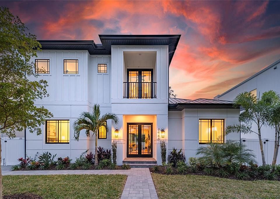 Introducing an exquisite new construction home in the heart of Sarasota, just minutes from downtown and walkable to Arlington Park. This 2,743 sq. ft. modern residence offers 6 bedrooms and 4.5 baths, including a rare detached accessory suite—perfect for hosting guests, accommodating extended family, creating a rental opportunity, or setting up a private office. Inside the main home, an open and light-filled floor plan showcases elegant finishes and a direct view of the pool. The chef’s kitchen features Bosch appliances, quartz countertops, custom cabinetry, and a walk-in pantry, flowing seamlessly into the living room and out to an expansive patio with an outdoor kitchen, paver pool deck, and lush landscaping for effortless indoor–outdoor living. Warm-toned engineered hardwood is throughout the home. The first-floor primary suite is a luxurious retreat, complete with high ceilings, a serene pool view, an oversized walk-in closet, and a spa-inspired bathroom with soaking tub, separate shower, and designer finishes. For convenience, a stacked washer/dryer is tucked into the suite, complemented by a full laundry room upstairs. There is a guest bedroom on the main floor, and an additional three bedrooms upstairs, with full bathrooms and multiple balconies. Built to the latest codes, this home offers peace of mind with energy-efficient systems, impact-rated windows and doors, modern insulation, and storm-ready construction—delivering lower utility costs, reduced maintenance, and lasting value. Perfectly situated between Siesta Key and Downtown Sarasota, you’ll enjoy quick access to award-winning beaches, fine dining, shopping, and cultural attractions. Whether you’re entertaining by the pool, enjoying a night out, or unwinding at home, this property offers the ultimate Sarasota lifestyle.