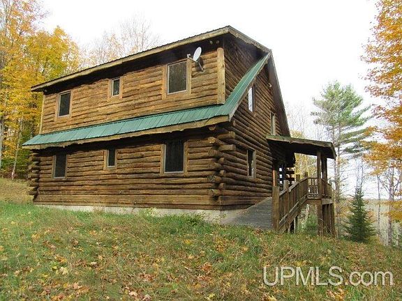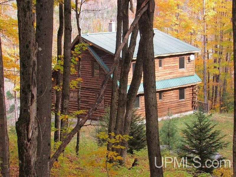 Privacy and amazing beauty are yours in this stunning setting on the Sturgeon River. This hand-crafted cabin sits up on an incredible overlook taking in the 1200' of Sturgeon River frontage and the surrounding valley. This cabin is a 4 bedroom, 2 bath masterpiece with a full basement. There is a 15kw generator housed in its own building and includes remote start from inside the house. The kitchen includes custom oak cabinets, maple butcher block counter tops and a Jenn-Air Range with Grill. Stay warm with the wood burning stove with backup from the propane heater in the basement. Close to the Hiawatha National Forest, thousands of miles of trails, dozens of lakes and many other treasures. Generator, all furniture and appliances are included!