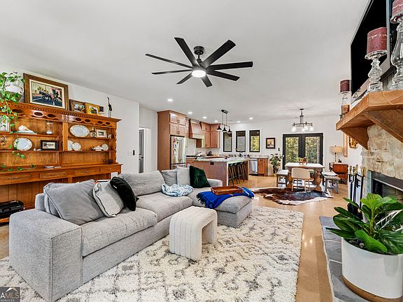 Welcome to your own piece of the countryside - a custom-built 4-bedroom, 3.5-bath home on over 35 beautifully manicured acres. Step inside to find gorgeous polished concrete floors, a bright open layout, and a gourmet kitchen with a 10-foot island, high-end gas stainless steel appliances, and custom cabinetry, perfect for cooking and entertaining. The main level includes the primary suite with a luxurious en-suite featuring a soaking tub and tiled walk-in shower. Two additional bedrooms on the main level are generously sized, and the full bonus room over the garage offers a private bath and walk-in closet for flexible living space. This high-efficiency energy home features a tankless water heater, spray foam insulation, well-water filtration and softener, and all casement windows, combining modern performance with timeless style. The attached 2-car garage and back porch are wired with 220 outlets, ideal for electric vehicles, tools, hobbies, or projects. Modern touches and finishes flow throughout the home, creating a clean, polished aesthetic while maintaining comfort and functionality. Outside, the property is a true country retreat. Enjoy a covered back patio, greenhouse, storage shed, and a custom chicken coop that matches the home. A 1-acre fenced livestock area and a 30x22 barn with slab foundation, high ceilings, and two roll-up doors provide ample space for outdoor projects, equipment, or storage. A second home site is graded with a perc test, and half a mile of driveway with roads cut in plus underground utilities make this property both flexible and functional. With over 35 acres of open land, there's room to garden, explore, or simply relax and take in the peaceful surroundings - a rare combination of modern comfort, high-end finishes, and true country serenity.