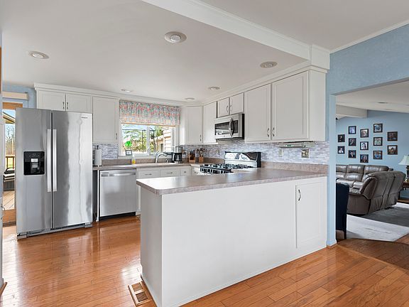 Way bigger than it looks! This charming single-story ranch offers surprising space with 3 bedrooms, 2.5 baths, and a bright, open layout perfect for modern living. The updated kitchen shines with new countertops, stainless steel appliances, recessed lighting, and gleaming hardwood floors—flowing seamlessly into a spacious dining area. You'll love the large family room featuring vaulted ceilings and a cozy fireplace, plus a bonus three-season room to enjoy almost year-round. Beautifully landscaped front and backyard create a serene outdoor retreat, complete with a handy storage shed. Whether you're a first-time buyer or looking to downsize, this home checks all the boxes—move-in ready and full of charm!