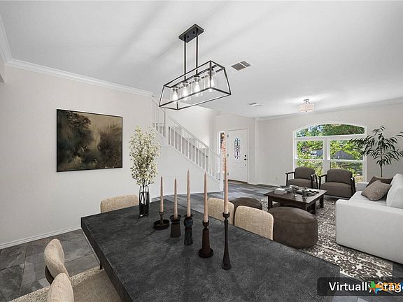 Step into this beautifully refreshed and upgraded home, offering a perfect blend of comfort and style. This two-story residence features two spacious living areas and two dining spaces, providing ample room for both relaxation and entertaining. The downstairs is a showcase of elegance with newly installed flooring and fresh paint, complemented by beautiful crown molding that extends throughout the entire level. The heart of the home is the open-concept kitchen, which flows seamlessly into the dining area, featuring a charming bay window. The main living room is a true showstopper, centered around a gorgeous floor-to-ceiling stone fireplace, creating a warm and inviting atmosphere. All four bedrooms are located upstairs for added privacy, along with the convenience of an upstairs laundry room. The primary bedroom is a true sanctuary, featuring crown molding and a luxurious spa-like en suite bathroom. This private retreat boasts a huge walk-in shower with a built-in bench, separate vanities, and an expansive walk-in closet with a window for natural light. The other three bedrooms are generously sized, offering comfort for family and guests. Outside, discover a private backyard oasis, complete with a convenient storage shed, perfect for all your outdoor needs. This move-in-ready home has been meticulously upgraded from top to bottom, promising a lifestyle of ease and sophistication.