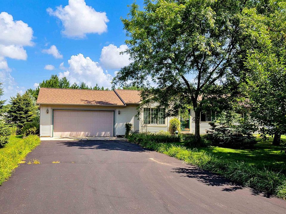 Exceptionally maintained 3-bedroom, 2-bathroom Ranch style home in the Village of Plover. This quiet setting features an abundance of privacy, manicured landscaping, and beautiful flowerbeds. From the 2-stall attached garage, the kitchen opens with functionality and wonderful access to the covered deck (Pergola is included in sale). The living room, hallway, and bedrooms have recently updated vinyl flooring. The primary bedroom includes a walk-in closet and private bathroom. Additionally, the lower level is immaculate and plumbed for future expansion. Located only a short walk to Galecke County Park, this Plover location is perfect. Additional Seller updates: Roof (2017), Water Heater (2019), Extra Pergola Cover included.
