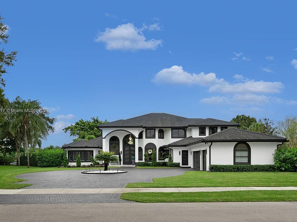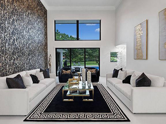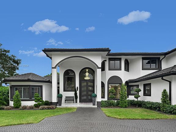 In Davie, this sprawling 7-bedroom, 4.5-bathroom estate spans 6,000+ sq. ft. with lake views, a newly remodeled saltwater pool, and outdoor kitchen. Features include high ceilings, white porcelain tile, and wood flooring on the second level. The home’s two kitchens are equipped with new appliances, while the first-floor master suite includes its own A/C and water heater. Enjoy a 10-seat theater room, generator, impact windows, and plantation shutters. Outdoors, a basketball court and mosquito system enhance the builder’s acre, perfect for luxurious entertaining and family living.