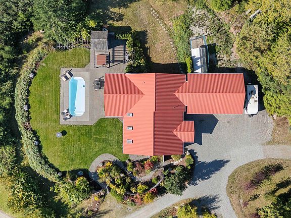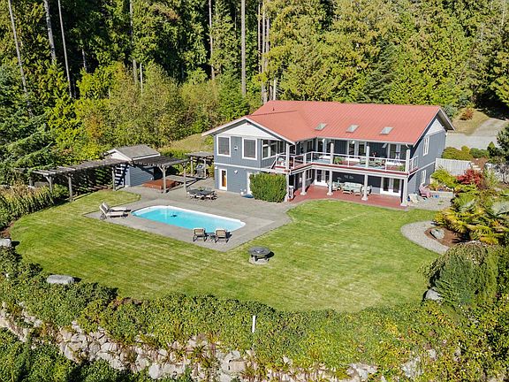 Beautiful 9.54-acre equestrian estate in desirable Roberts Creek. Panoramic ocean views, privacy and a turnkey country lifestyle. Formerly a dahlia farm with orchard, berries and greenhouses, it could easily regain farm status. The custom 5BR home features meticulous craftsmanship—Brazilian cherry floors, cherry cabinetry, granite counters, double ovens, butler’s pantry and formal + casual living. Covered balconies capture sunsets, while the walk-out lower level opens to a 32’ heated pool, hot tub, fenced yard and summer kitchen with suite potential. Equestrian facilities include an overheight 3-stall barn, turnout, training paddock, huge workshop and a fully self-contained 2BR suite above for income or staff. 3-car garage and dog run add convenience. Luxury, horses and coastal living!