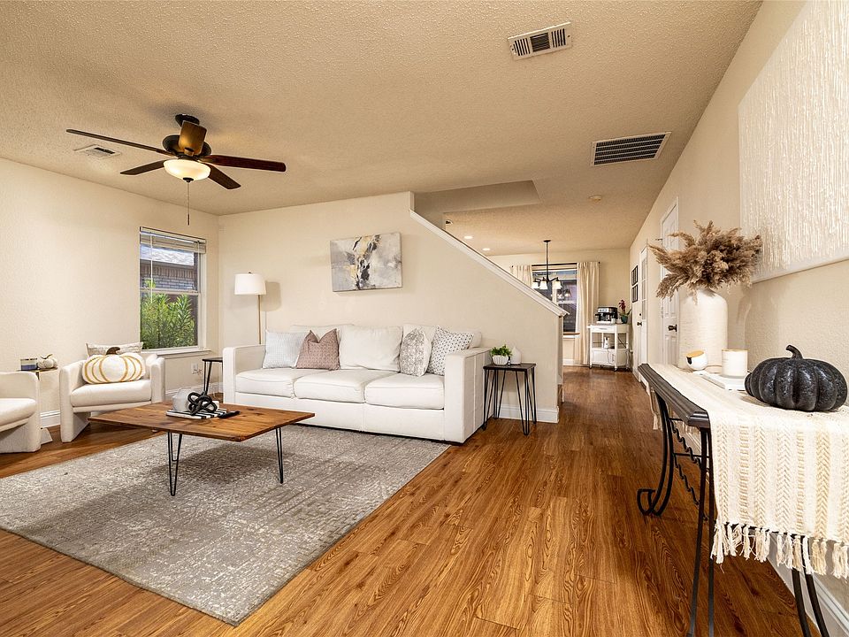 Recent improvements include a new water heater (2025), fence (2022), roof and HVAC system (2021), and updated front landscaping. Outside, the covered back porch provides the ideal spot for morning coffee or evening gatherings.