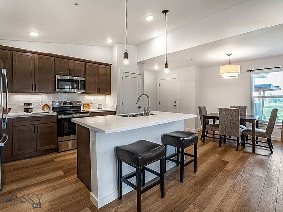 Welcome to 2440 Tschache Unit 302, a stylish 2 bed, 2 bath condo in the heart of Bozeman. This move-in ready home offers an open floor plan filled with natural light, a cozy fireplace, and a private balcony to enjoy Montana views. The kitchen features stainless steel appliances, ample cabinetry, and bar seating that flows into the dining and living areas. The spacious primary suite includes a walk-in closet and private bath, while the second bedroom and full bath provide flexibility for guests or a home office. Additional conveniences include in-unit laundry, dedicated parking, and low-maintenance living. Ideally located near shopping, dining, trails, schools, and just minutes to downtown Bozeman.