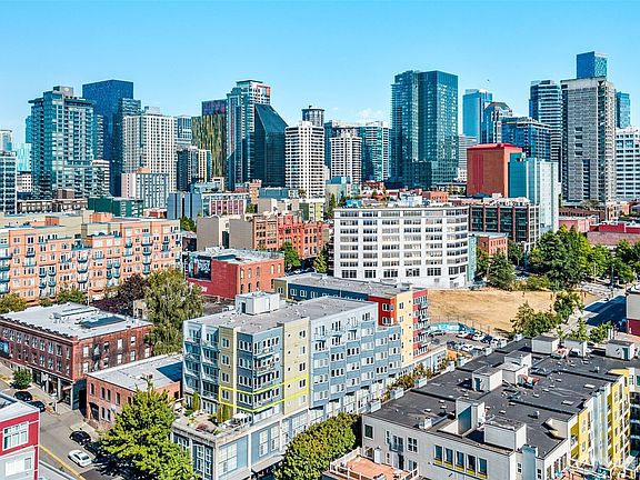 Spacious and bright southwest facing condo with views of Elliot Bay & the Sound! This home features a wall of windows to let in light & fresh air year round. Walk to Pike Place, the Waterfront & SLU. Enjoy all downtown has to offer with a home steps from everything but in a quieter block with iconic Seattle sea gull sounds & views including the Space Needle! Relax & recoup in comfort & style with granite counters, stainless steel appliances, breakfast bar & open living area with 2 large bedrooms. Site 17 is a pet friendly complex that includes on-site management, roof-top deck, fitness room and game/party room. 1 fully covered parking space & storage, in-unit washer & dryer plus fresh paint & carpeting throughout.