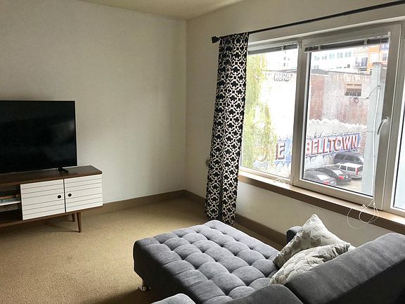 At 740SF, this is one of the largest 1 bedrooms you will find under $2000/month! Easy and hands on communications with landlord's boutique management company. LARGE & PRIVATE Belltown PRIVATE one bedroom is waiting for you to call home. Spread out in this TOP floor, QUIET & spacious 1 bedroom at Site 17 in Belltown. Bedroom has no shared walls! A large living space, a brand new kitchen, a true one bedroom, in unit washer and dryer. EASY ACCESS to huge common deck with gas grills; just walk up one level via open staircase steps from the front door. Work out in the gym! A quiet unit in the midst of the fun hustle/bustle of Belltown. Walk everywhere to Pike Place, Downtown, Space Needle and Lake Union! Check it out! Pets negotiable. There is no parking included in this rental. (and no option to pay for parking). Identification maybe be requested before scheduling a showing. Background and credit check required, $150 non-refundable move in fee, first months rent plus $1500 deposit. Credit score 750+. Tenant to pay for electricity and internet.