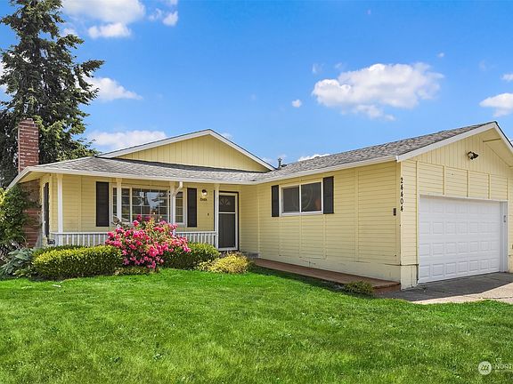 Conveniently located, affordably priced & newly remodeled with modern style, you'll love the vibe & feel right at home in this move-in ready 1200sf, 3 bedroom, 2 bath rambler on prime corner level lot with dream backyard in Des Moines! Gorgeous new whitewashed laminate wood floors, new doors, new trim & fresh paint throughout. Spacious & light-filled living room with designer fireplace opens to dining room & luxuriously upgraded kitchen with stunning calacatta quartz counters, full-height subway tile backsplash, undermount sink & spring spout faucet. Primary suite with skylight & showcase ensuite bath. Efficient central heat. Huge garage with tons of storage. New Entertainment-sized Deck. RV/Boat parking. Carefree stair-free easy living!