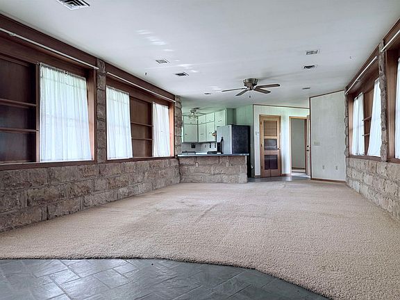 Priced to sell FAST!! This unique estate property offers the perfect blend of space, character, and country living with 17 acres just outside Langdon, Kansas—only 25 minutes to Hutchinson or Kingman and about an hour to Wichita. The 2-bedroom stone home exudes mid-century modern charm and includes a one-car attached garage, a wood-burning stove, private water well, natural gas, and septic with lateral lines. Selling as-is, the property features a beautiful pond, a small cabin accessible by easy trails, and several outbuildings, along with some personal property that will remain. Scenic views surround the home, with convenient highway access. Seller prefers a cash sale but will consider conventional financing, making this a rare opportunity to own a spacious retreat with endless potential.