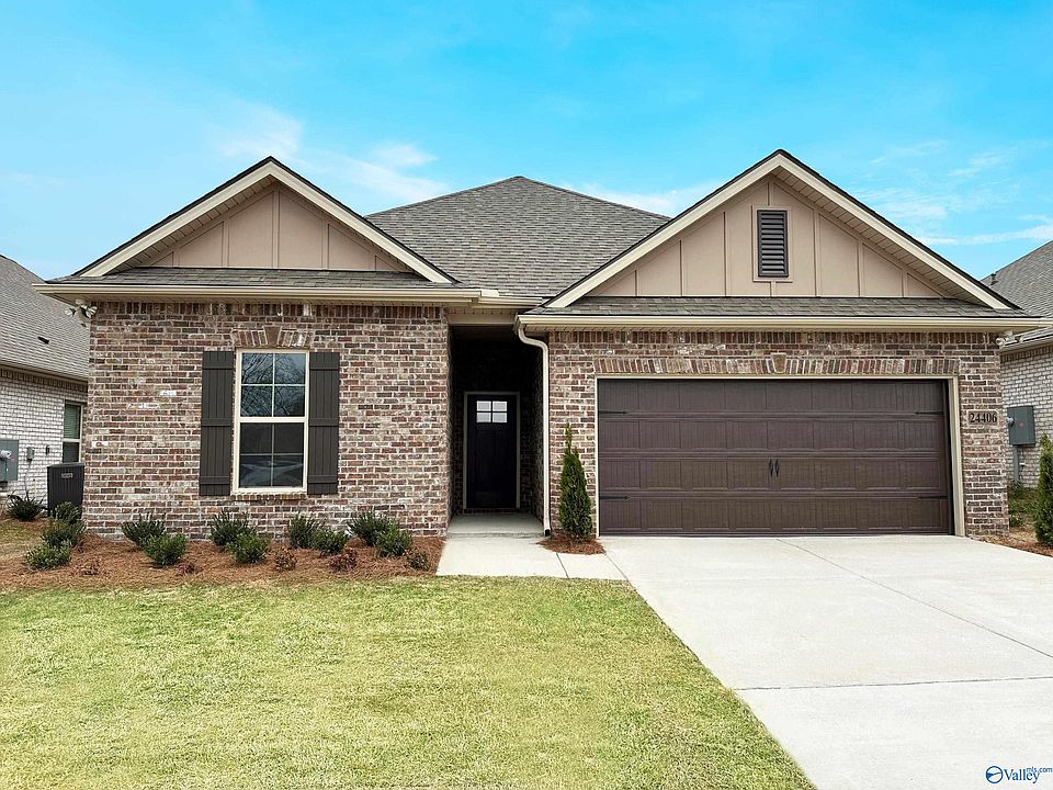 The TRILLIUM IV J in Wingate community offers a 3 bedroom, 2 full bathroom, open and split design. Upgrades added (list attached). Features: double vanity, garden tub, separate shower, and walk-in closet in the master suite, closest opens to laundry room, kitchen island, walk-in pantry, recessed lighting, covered front and rear porches, undermount sinks, crown molding, ceiling fans in living area and master bedroom, landscaping, gutters and downspouts, stone address block, flood lights, termite system, and more! Energy Efficient Features: a kitchen appliance package, water heater, vinyl low E-3 tilt-in windows, and more!