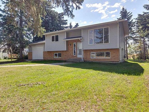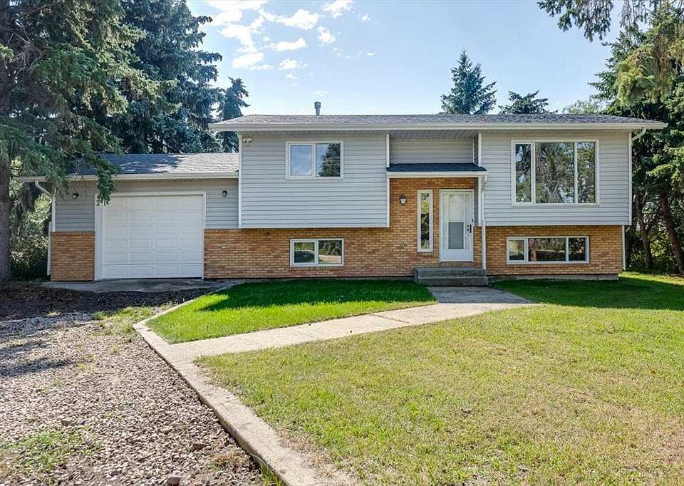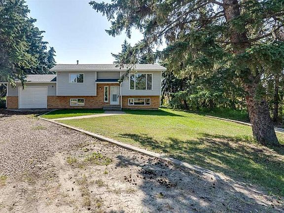 Located in the quiet hamlet of Haynes, this well maintained bi-level offers peaceful country living just 28 minutes East of Red Deer, and just 10 minutes East of Joffre! Step inside to find a spacious kitchen featuring oak cabinets, a large and inviting living room, two main-floor bedrooms, and a 4 piece bathroom. The basement is partially finished with a completed bedroom and laundry area, while the remaining space is open for future development. Recent updates include fresh paint, stained window trim and baseboards, and professional cleaned carpets. Outside, enjoy a newly stained rear deck (just 5 years old), and shingles were replaced 5 years ago. The 18' x 22' finished garage comes with an underfloor heating system that does require some maintenance. Situated on a well-treed 77' wide lot, this property offers privacy and backs on to farmland to the south and west. This property also includes its own water well, septic tank & field.