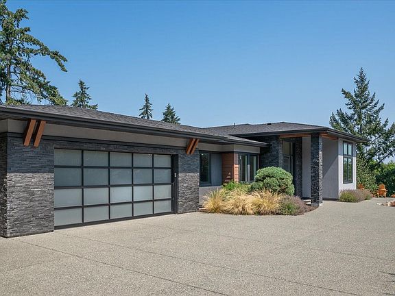 Timeless Contemporary Elegance. Above the second green of Fairwinds Golf Course with views across the pond to Southey Island and Coastal Mountains. The sophisticated style and flawless design of this custom contemporary 3-bed, den, 4-bath home features 12’ ceilings in the Great room, kitchen, foyer and den,4 fireplaces and beautiful walnut flooring w/inlaid mosaic tile accents. Oversized windows in the Great Room frame tranquil views providing a light airy living space with an intimate dining room. Award winning kitchen features a custom backlit floating walnut light bridge, granite counters, large island, pantry and state-of-the-art appliances. Elegantly appointed primary bedroom features a fireplace, oversized walk-in closet and ensuite. Custom cabinetry in den. The lower level with 10' ceilings, offers a media/family room, two guest beds w/ensuites, exercise and hobby rooms. Triple bay tandem garage with workshop space. Enjoy the lifestyle of a unique waterfront community