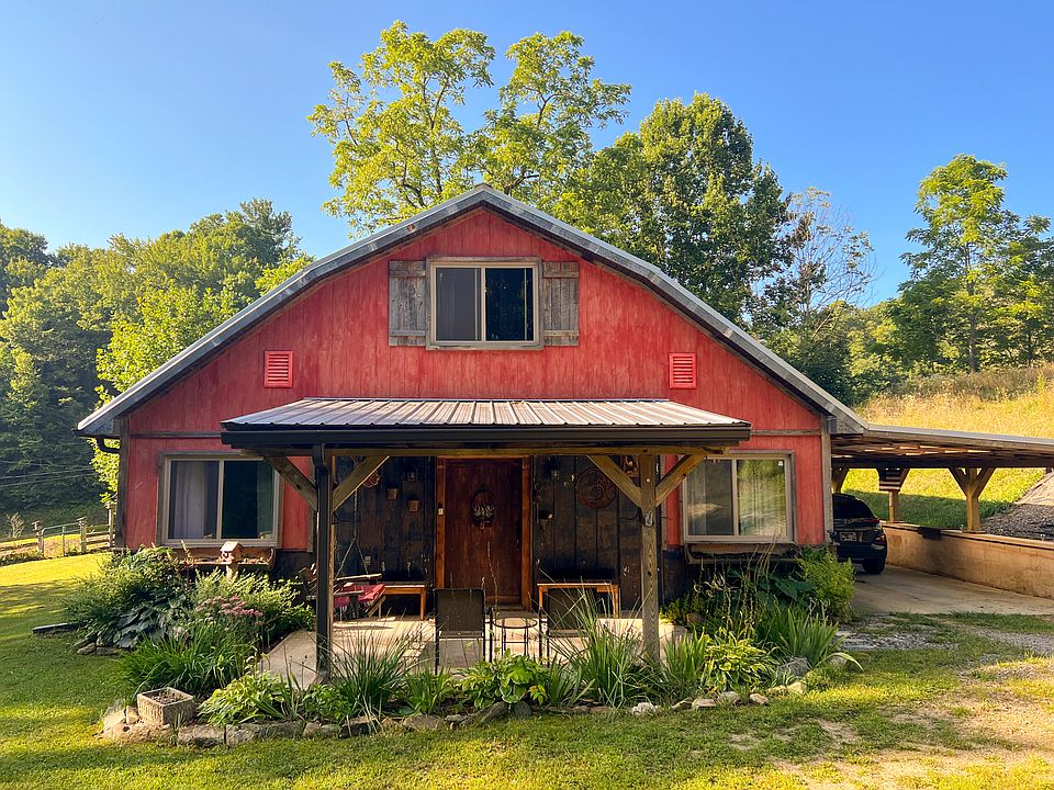 Check out this delightful farmhouse blending rustic charm and modern taste, set on nearly 2 acres with a serene year-round creek. Inside, discover barn wood accents, sleek cement floors, a kitchen with walk in pantry, and a peaceful sunroom. The spacious primary suite sits on the main floor, while upstairs boasts two bedrooms and a bathroom. With a vast level yard, it's perfect for gardening, play, or even some farm animals. Plus, stay effortlessly connected with Spectrum internet. Experience the blend of country living with modern convenience.