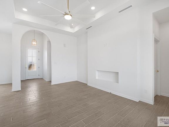 New construction home with a touch of luxury throughout. Home features plank tile floors, gold finishes, spacious kitchen with a walk-in pantry, an indoor laundry room, double vanity in master for added comfort and style. The home also features a covered patio and a generous backyard—perfect for relaxing or entertaining.