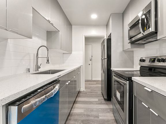 COMPLETELY REMODELED! This huge and newly remodeled apartment features a modern design, premium appliances, recessed LED lighting, WiFi enabled lighting with Amazon's Alexa support, dual pane windows, engineered wood floors, smart bathroom mirror, highly desirable finishes throughout, and on site laundry. The bedroom is spacious with extra-large closets. An additional linen closet can be found in the hallway. One carport parking space and additional storage is available.