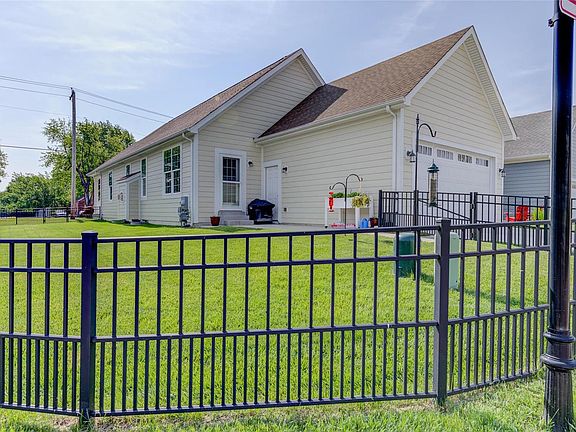 Spectacular 5-year young luxury ranch in Main Street Crossing! This move-in ready carefree living home is better than new construction, offering strong options when built, fabulous updates since, premium fenced corner lot, exceptional convenient location. Beautifully designed open floor plan has 3 bedrooms, 2 full baths, beautiful luxury vinyl plank floor, expanded main floor laundry/utility sink, attached 2-car garage. Pristine detail abounds in the gorgeous interior! Great rm gathering area w/lovely gas fireplace opens to dining rm w/half wall to LL. Absolutely stunning Chef's Delight kitchen w/large Island, tall cabinets/trim, stunning granite counters, impressive stone backsplash, stainless appliances: Thermador dual fuel oven, upgraded dishwasher, industrial hood. Master suite w/bonus walk-out exterior dr, walk-in closet, private bath. Basement ready to finish w/egress window, rough-in bath, abundant storage & is a finishing touch to this fantastic property!