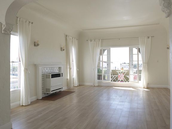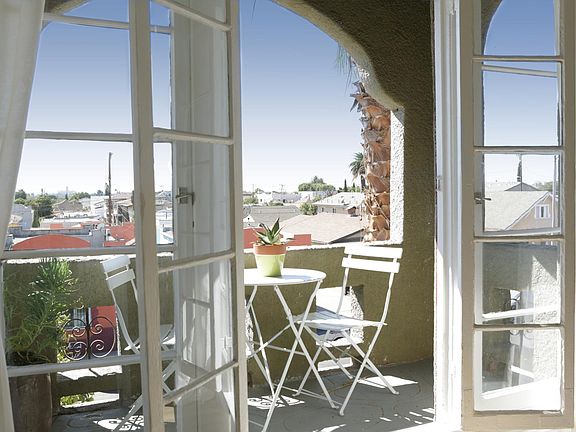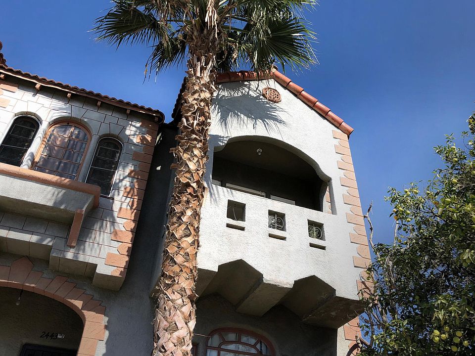 Spanish four-plex in Boyle Heights. Top floor, private, bright unit with high