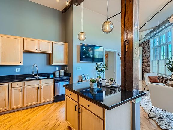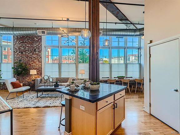 True 2 bed/2 full bath loft + additional office/den/flex space in the heart of RiNo. Unit 108 is positioned in the north apex of Silver State Lofts providing unobstructed views of the famed Benjamin Moore neon sign & Clock Tower. The loft has soaring 12+ foot ceilings, custom lighting, hardwood floors, 3 walls of windows nestled between 1910 exposed brick. Unique to this floor plan is that both bedrooms are on the glass - each room is bathed in natural light - difficult to find for the secondary bedroom in a historic loft conversion. The chef’s kitchen features slab granite, stainless appliances (new fridge) with gas range, abundant storage, adjacent dining area that seats 8 comfortably and an island. The private en-suite primary has a huge walk-in-closet and updated bathroom while the secondary bedroom boasts incredible views and is next to the 2nd full-bath. This is the 3rd largest unit in the building and has the only subterranean space which could function as a den (pre-wired for surround sound), an office, or conforming 3rd bedroom with its in-wall murphy bed. This home also includes an oversized climate-controlled garage parking spot, deeded basement storage (10x5x6) and use of the building’s communal bike storage & 2 rooftop decks: the north deck features a grill, dining & lounge areas whereas the south deck has views of the downtown skyline and sunsets over the mountains. Silver State Lofts is at the confluence of LoDo/RiNo & the location cannot be beat - 2 blocks to Coors Field & within 2 blocks of the best of RiNo: Central Market, Patagonia, Stowaway, Work & Class, Uchi, Los Chingones, Cart Driver, Yard Bird, Death & Co and the list goes on…