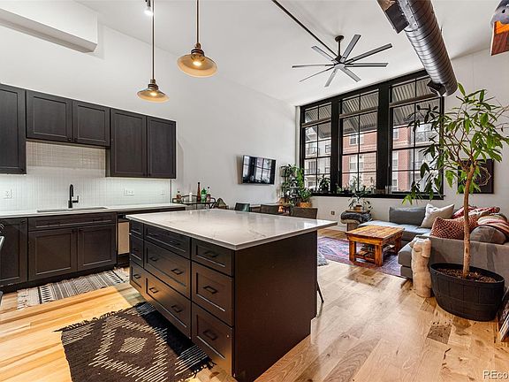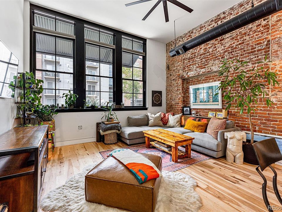 Beautifully remodeled 1 BR/1.5 BA condo in the historic 1910 Silver State Lofts, located in the vibrant heart of RiNo! This light-filled loft exudes industrial allure with its 12+ foot ceilings, exposed 50ft brick wall, hardwood floors, designer lighting, and three oversized windows that bring in the natural light & Denver. Fully renovated in 2019, the home boasts a private bedroom, a stylish bathroom featuring subway tile and a no-door walk-in shower, and an oversized walk-in closet with in-unit washer and dryer. The hallway is your own RiNo Mural Alley providing a perfect gallery for artwork, leading to the gourmet kitchen equipped with stainless steel appliances, slab granite countertops, custom cabinetry, and an island that opens to the living area. The living space is highlighted by exposed brick and large northwest-facing windows. The HVAC system was fully replaced (2021) for added comfort. The unit includes a deeded parking spot in the secure lot, access to a communal bike room, and additional storage in the basement (5x5x6). HOA dues cover everything except electricity and TV/cable. Silver State Lofts also offers two rooftop decks with seating and full gigabit Google Fiber WiFi throughout, making it ideal for working from home. Live in an unbeatable downtown location, located minutes from Union Station & Coors Field, this loft sits in the heart of RiNo, Denver’s vibrant art district, where urban charm meets industrial revival. Enjoy easy access to the best dining, entertainment, and creative street art in the area. With historic warehouses now home to galleries, breweries, and jazz bars, RiNo offers a one-of-a-kind living experience. Plus, you're just minutes from DIA, Red Rocks, and mountain getaways!