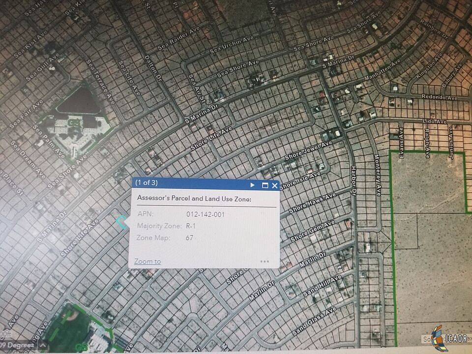 Salton City, Ca. 2441 Shore King Avenue. Large 10,268 sf M/L Zoned R1. Residential Corner lot located close to the sea/lake. Great location close to local schools. Close to shopping and Casino. You own the land. No HOA's. Views. Utilities close in street and rear. Area know for its gorgeous winter weather. Lower IID electric in this area. Area also growing in popularity due to Lithium and geo thermal as well as permanent residential sales as this is an area of California that still has affordable land and homes close to desert cities of Palm Springs, Indio, Coachella, Brawley and El Centro. APN 012-142-001.
