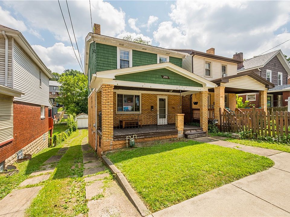 Great opportunity to make this Brookline home your own! 2441 Starkamp includes ideal off-street parking plus a 1 car detached garage, a fenced in yard, a covered front porch and back deck, and more! Hardwood floors are found throughout the first floor. The spacious living room includes a decorative fireplace, and flows to the separate dining room and kitchen. The kitchen includes white cabinets, SS appliances, LVP floors, and leads to the back covered deck. The second level includes 2 spacious bedrooms with good closet space, and an updated full bath with LVP floors, newer fixtures, and a tiled shower. The basement can easily be converted to a finished gameroom, and offers additional storage and laundry space. Located minutes from shops and restaurants on Brookline Blvd.