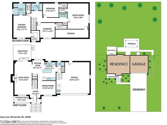 Upstairs, the home offers flexibility with three bedrooms—or the option of using the spacious bonus room with closet as a living area or fourth bedroom. The private primary suite includes a generous bathroom with a separate shower and a relaxing tub. A key feature of the upper level is the abundance of storage, as all bedrooms boast spacious walk-in closets.