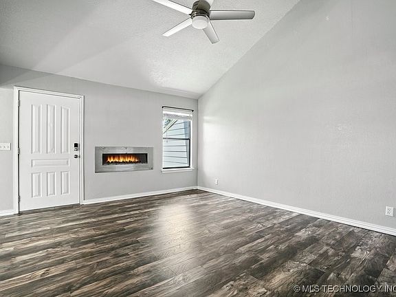 Welcome to this charming 2-bedroom, 1.5-bath home in the heart of Broken Arrow! The bright living area features a cozy fireplace and vaulted ceilings that create an open, airy feel.