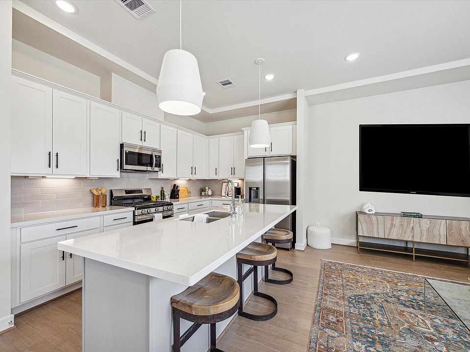 Stainless-steel appliancesFour bedroomsWide-plank swiss flooringQuartz countertopsTray ceilingsUtility roomDual vanities