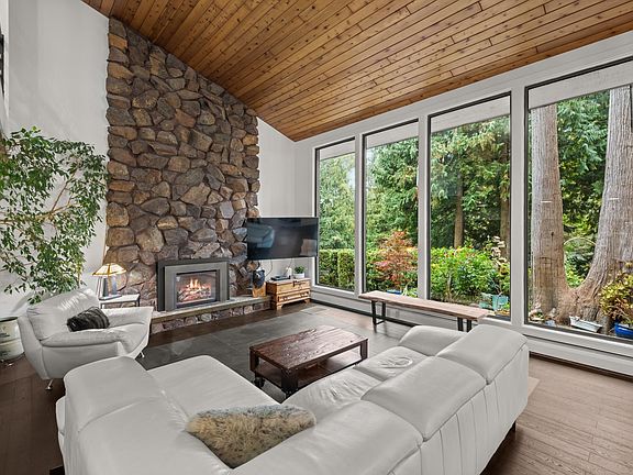 Vaulted ceilingsCustom cabinetryGas rangeLarge windowsNatural lightScenic viewsLush forest