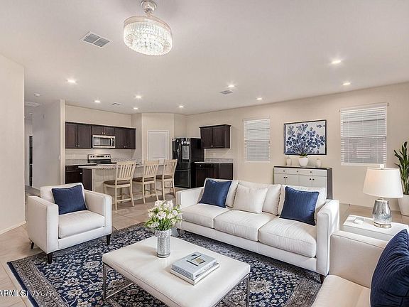 This 4 bed, 3 bath home features a private-entry casita with its own bedroom, kitchen, living room, and laundry—perfect for family, guests, or rental income. The main home offers an oversized living room and primary suite. The open concept kitchen is perfect for entertaining, complete with dark wood cabinets, granite countertops, and a timeless neutral palette. The low-maintenance yard with turf and pavers makes outdoor living easy. Rented solar panels help keep energy costs down. Functional, flexible, and ready for your personal touch!